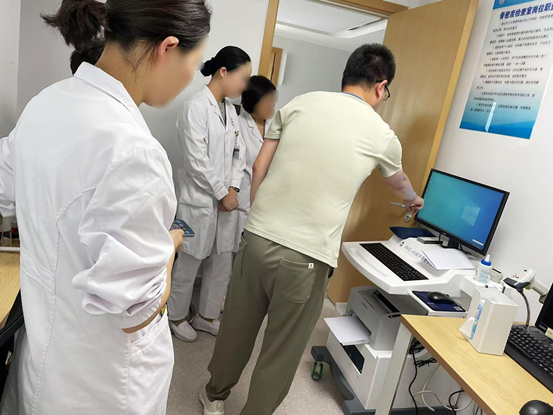 完成裝機(jī)后,售后工程師團(tuán)隊(duì)隨即開(kāi)展了嚴(yán)謹(jǐn)深入的培訓(xùn)工作。培訓(xùn)內(nèi)容涵蓋設(shè)備結(jié)構(gòu)功能、檢測(cè)操作、報(bào)告解釋、軟件使用、保養(yǎng)等各個(gè)方面。在檢測(cè)操作培訓(xùn)環(huán)節(jié),工程師進(jìn)行現(xiàn)場(chǎng)演示,指導(dǎo)醫(yī)護(hù)人員正確擺放患者檢測(cè)部位,熟練操作設(shè)備獲取準(zhǔn)確數(shù)據(jù)。對(duì)于報(bào)告解釋,工程師詳細(xì)解讀了報(bào)告中各項(xiàng)參數(shù)的含義,如骨密度值、T 值和 Z 值等,讓醫(yī)護(hù)人員能夠依據(jù)報(bào)告為患者提供專業(yè)的診斷建議。