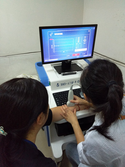 超聲骨密度測量系統(tǒng)是超聲診斷學范疇中的一項專門技術(shù), 主要利用骨質(zhì)對超聲衰減度和聲速的變化來進行無創(chuàng)、無損、無輻射檢測人體骨密度、骨強度等生理學參數(shù), 對兒童生理發(fā)育,成人骨損、骨折風險的預防有很大的參考價值和指導價值, 為骨質(zhì)疏松疾病提供一種先進的診斷手段。該法操作簡便、安全無害、價格便宜、所用的儀器為兒童骨密度儀,和做B超一樣抹一點耦合劑,之后就有一個手柄式探頭對準骨頭部位進行掃描即可,大約需要3到5分鐘。
