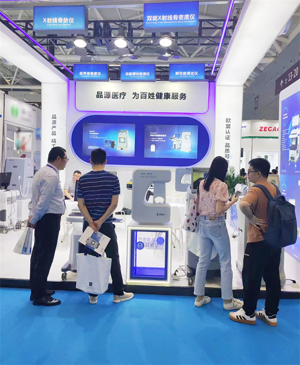 在這場醫(yī)療科技的盛宴中,品源醫(yī)療以其非凡的創(chuàng)新實力和精湛品質(zhì),成為了展會中的一顆璀璨明珠。此次展出的雙能X射線骨密度儀、超聲骨密度檢測儀、X射線骨齡儀、動脈硬化檢測儀以及肺功能測試儀系列產(chǎn)品,憑借著檢測精準,人性化的設計理念以及舒適、便捷的檢測體驗,吸引了眾多國內(nèi)外客商和專業(yè)人士的目光。