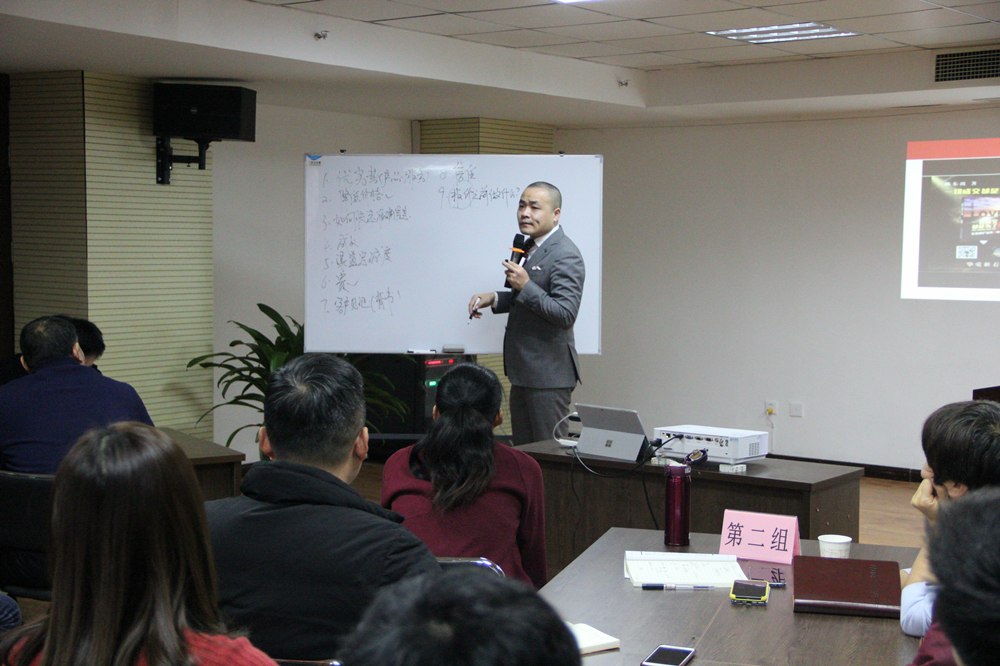 緊接著,由陳東波老師作營銷培訓。陳東波老師培訓前專門對我司經(jīng)營現(xiàn)狀和經(jīng)營模式作了詳細的了解,并依此做了充分準備。針對銷售過程中經(jīng)常遇到的問題展開分析,結合成功的營銷經(jīng)驗,從客戶類型的判斷、銷售溝通的技巧、如何快速成交、面對面談判技巧等多個方面給出了問題的解決方法。