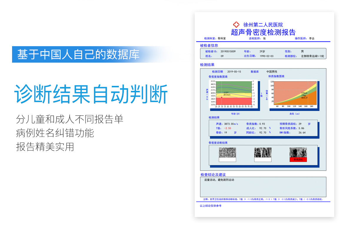 ■ 軟件優(yōu)勢::BMD-A系列超聲骨密度檢測儀一臺儀器裝配有智能分析系統(tǒng),經(jīng)濟(jì)實(shí)用??蓽y量0-100歲人群。