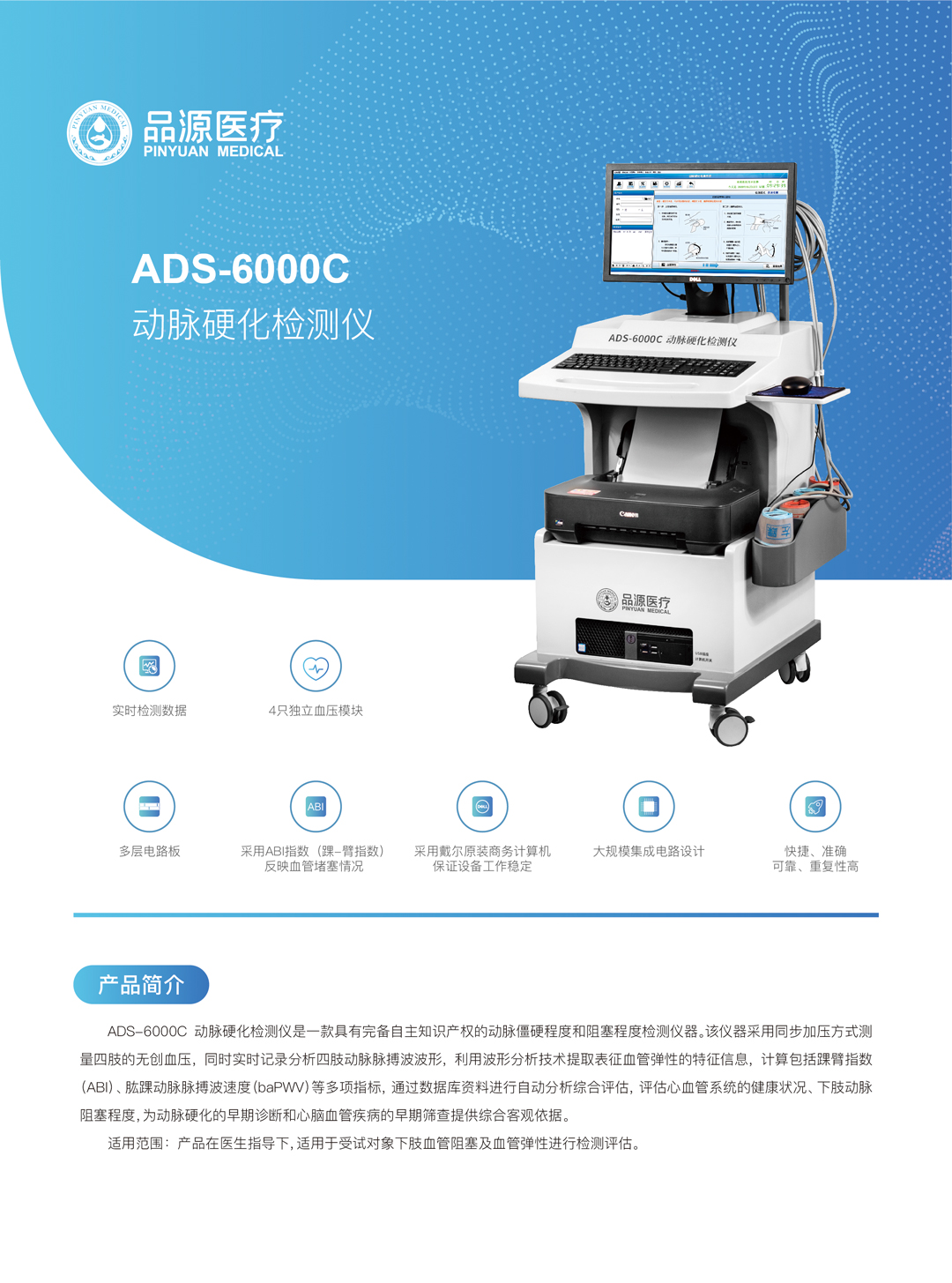 適用范圍:產(chǎn)品在醫(yī)生指導(dǎo)下,適用于受試對(duì)象下肢血管阻塞及血管彈性進(jìn)行檢測評(píng)估。