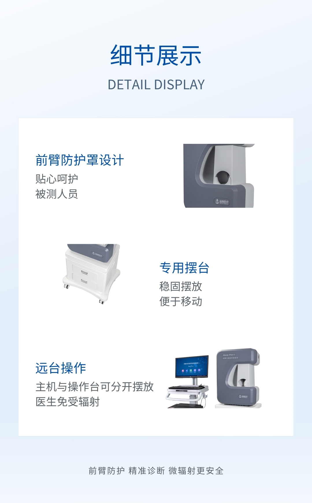 Dexa Pro 系列雙能 X 射線骨密度儀測(cè)量手臂前段,這些部位易顯露,操作簡(jiǎn)捷,無需消毒。測(cè)量速度快,方便醫(yī)生及病人,可用于大人群檢測(cè)。